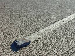 Sailing stones or sliding stones are mysterious phenomenon in which the rocks move through a smooth valley floor leaving tracks behind.They have been recorded and observed in and around Death valley and Racetrack Playa.The forces behind these rock movements are mysterious and they have not been found by research.